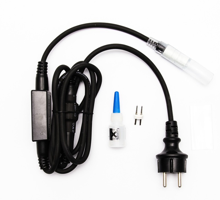 Sada obsahuje - zdroj AC/DC s dĺžkou kábla 1,5m, pripojovací konektor, lepidlo, čiapočku a zmršťovaciu trubičku.